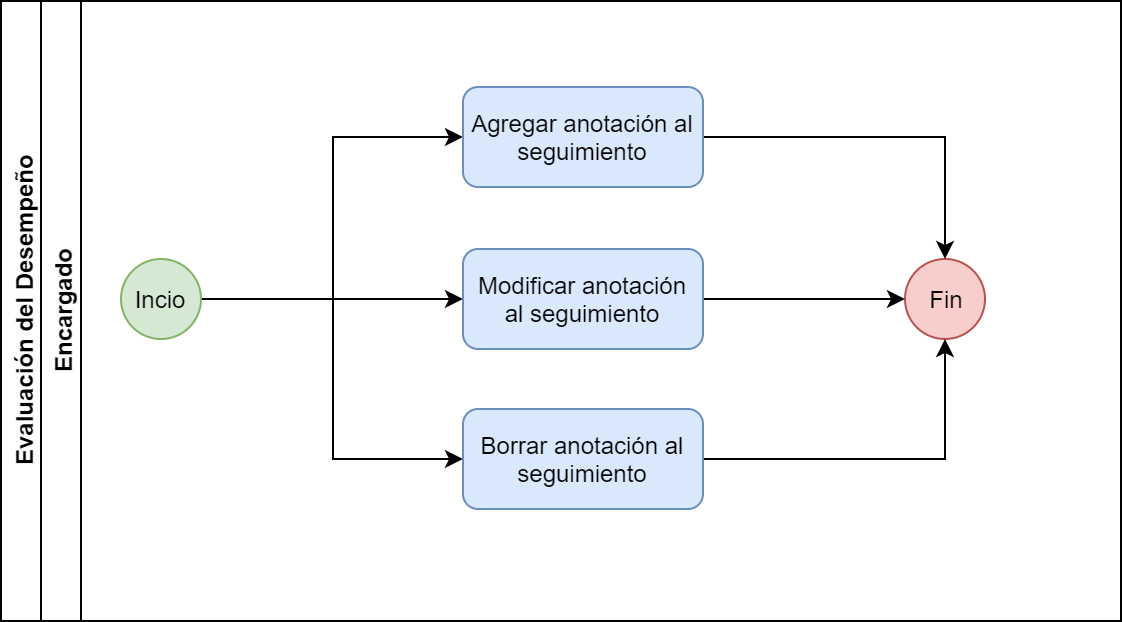 El proceso consiste en agregar, modificar o borrar una anotación al seguimiento como se presenta en el siguiente gráfico: