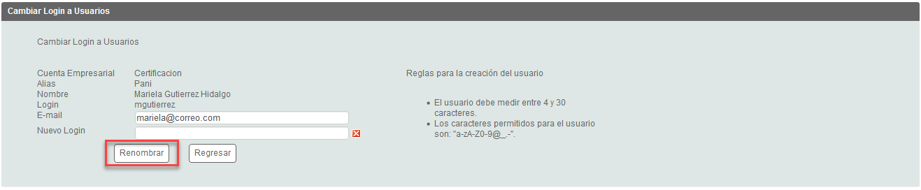 En casos muy específicos es necesario cambiar el login a algún usuario de nuestro sistema, es en esta opción donde se debe realizar
